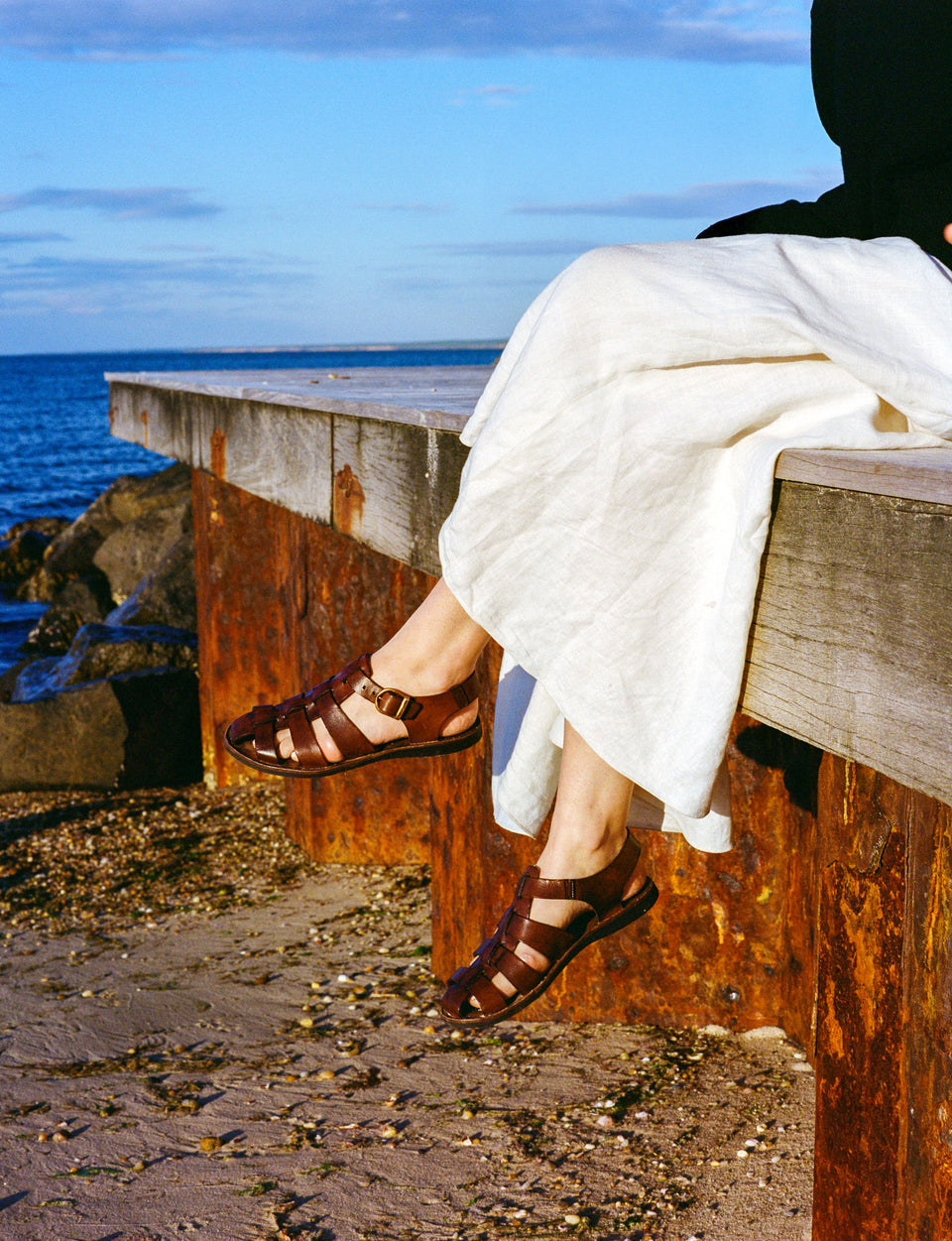 Handcrafted in Tavullia, Italy, our Lido Sandals were designed with Sprezzatura in mind - an Italian concept meaning "effortless elegance." From the beach to a night on the town, this Sandal was dreamed up to accompany you no matter where the day goes. Each pair is made with unlined vegetable tanned Tuscan leather from one of Italy's finest tanneries. Soft yet sturdy, this exquisite leather will quickly form to your feet with every step and become undeniably beautiful with wear. Proprietary to our process, the undyed leather is dip-dyed by hand to achieve a rich natural brown and then tumbled with pumice stones & water, which softens edges for maximum comfort and adds to the crafted aesthetic. The ergonomic foot bed was designed with pure comfort in mind. By using a slotted construction and an anatomical shaping method, the feet slide securely into the insole, hugged for a stable feel throughout. Finally, each pair is finished with an injected rubber outsole for traction and durability. Enjoy!