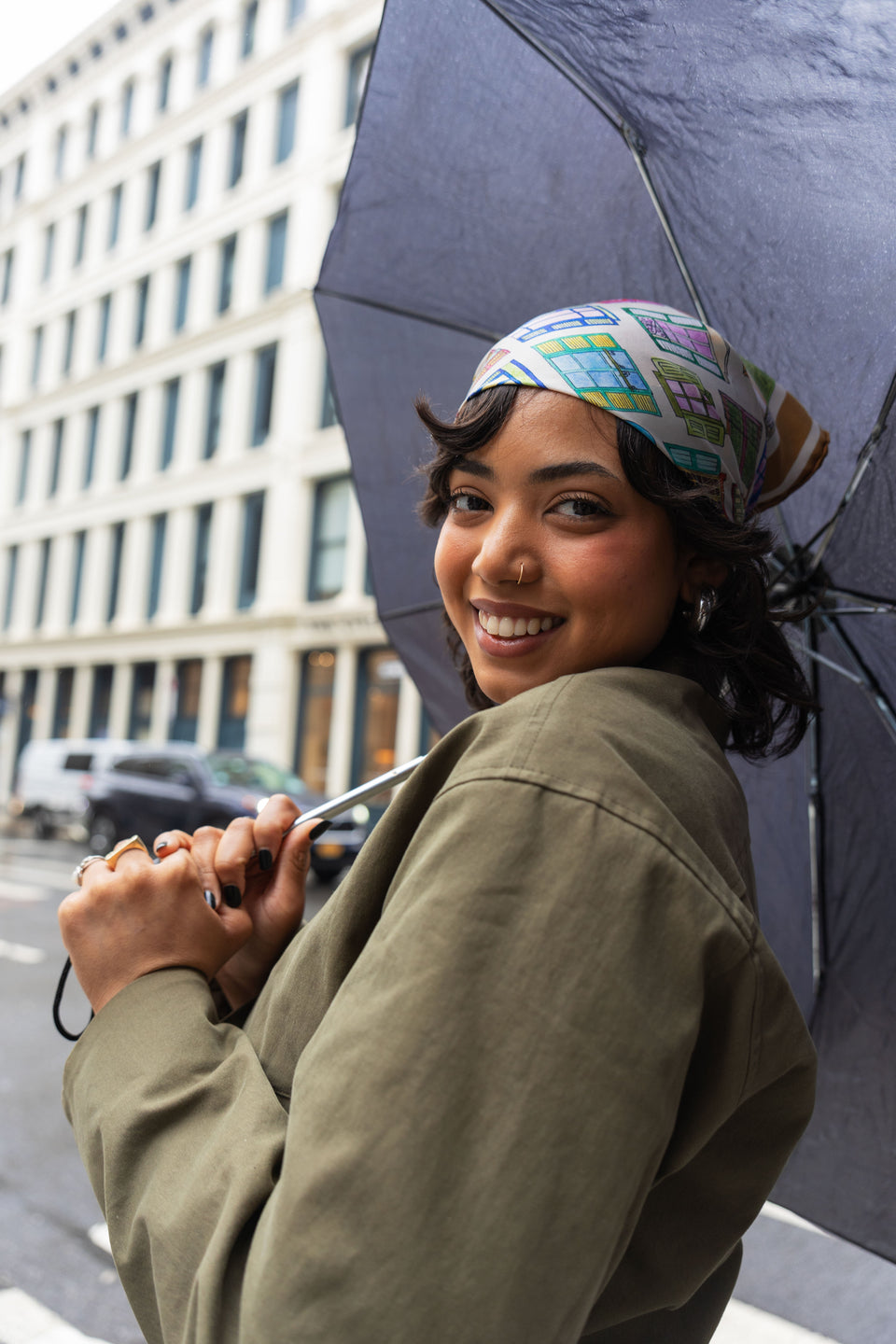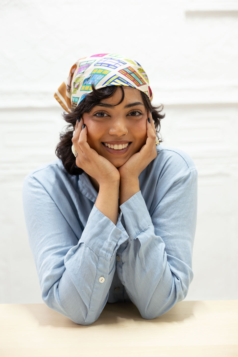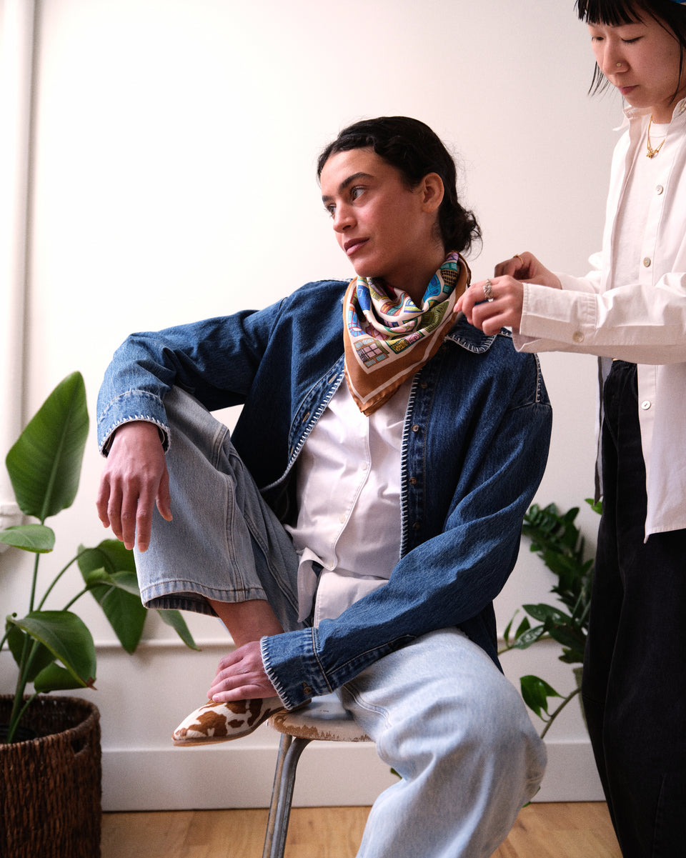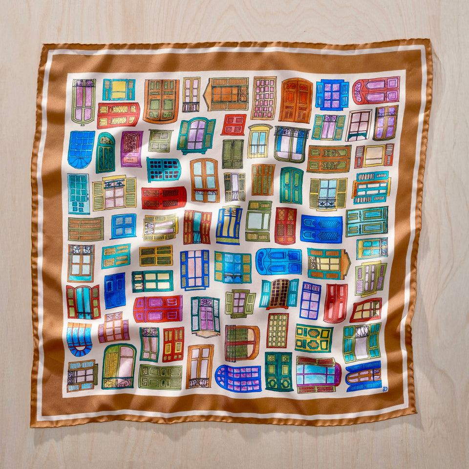 Introducing our second Portals Bandana, inspired by doorways & windows of Paris, which act as portals into new worlds, stories, and endless scenes. Made in Como, Italy of 100% silk with elegant hand rolled edges, use this bandana around your neck, to tie up your hair, adorn a bag, or more and give a playful pop to any look.