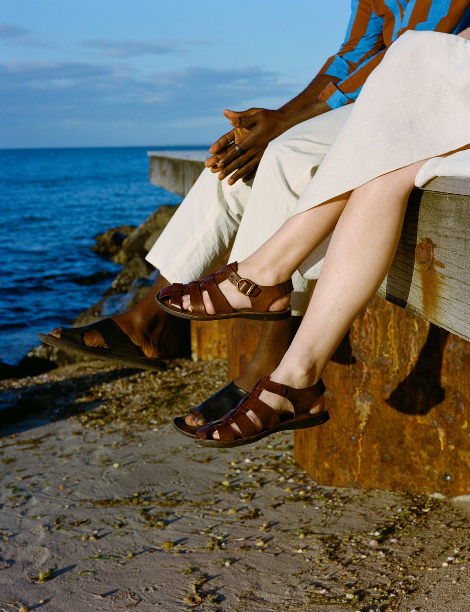 Handcrafted in Tavullia, Italy, our Porto Sandals redefine ancient workwear. This storied silhouette has long been worn throughout history to accompany both work and play, alike. This is a sandal that can keep up with your most electrifying adventures , near and far, while providing maximum comfort and unsurpassed support. Each pair is made with unlined vegetable tanned Tuscan leather from one of Italy's finest tanneries. Soft yet sturdy, this exquisite leather will quickly form to your feet with every step and become undeniably beautiful with wear, while also offering full protection whether hiking down rocky beaches or navigating city streets. Proprietary to our process, the undyed leather is dip-dyed by hand and then tumbled with pumice stones, which softens leather edges and helps create a natural rugged aesthetic. The ergonomic foot bed was designed with pure comfort in mind. By using a slotted construction and an anatomical shaping method, the feet slide securely into the insole, hugged for a stable feel throughout. Finally, each pair is finished with an injected rubber outsole for traction and durability. Enjoy!