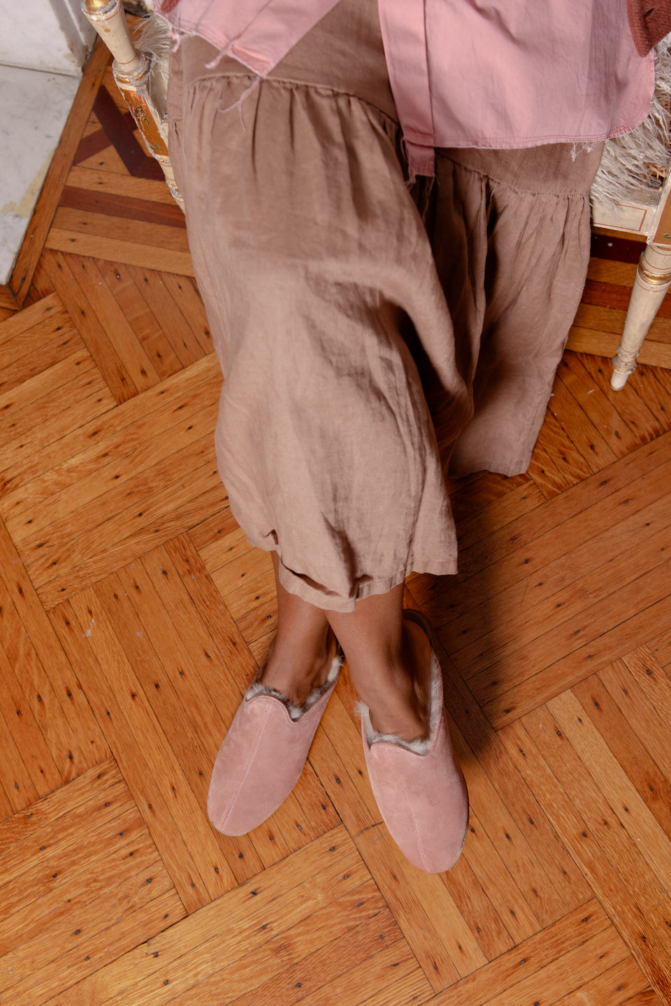 An all-time fan favorite returns with our luxurious Shearling lining. A graceful rose pink with a little fading & variation in its color that lends this pair a bit of a vintage look. Handmade in Turkey, entirely of leather, and then lined with a soft, extra thick, and all natural shearling that envelopes your feet with warmth, our Shearling Babas are made to last for many seasons to come.