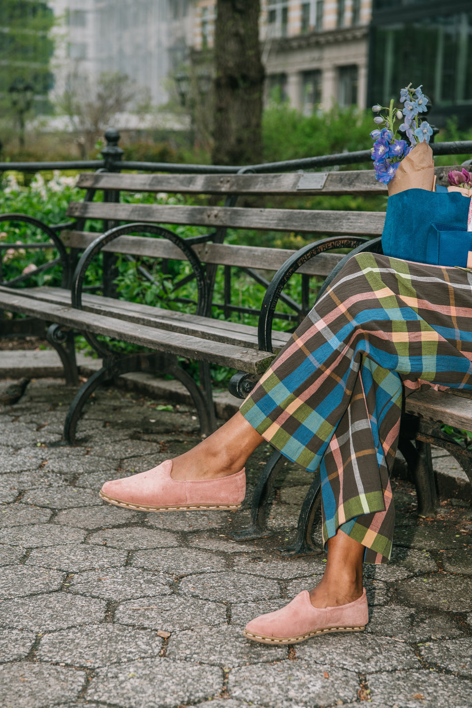 A new suede so soft they require no time to break in; and a color so beautiful & wearable, they're equally effortless to style. A soft rose pink with a little fading & variation in its color that lends this pair a bit of a vintage look, and that'll get only better looking with wear. A perfect pair to kick off Spring and wear through Summer!