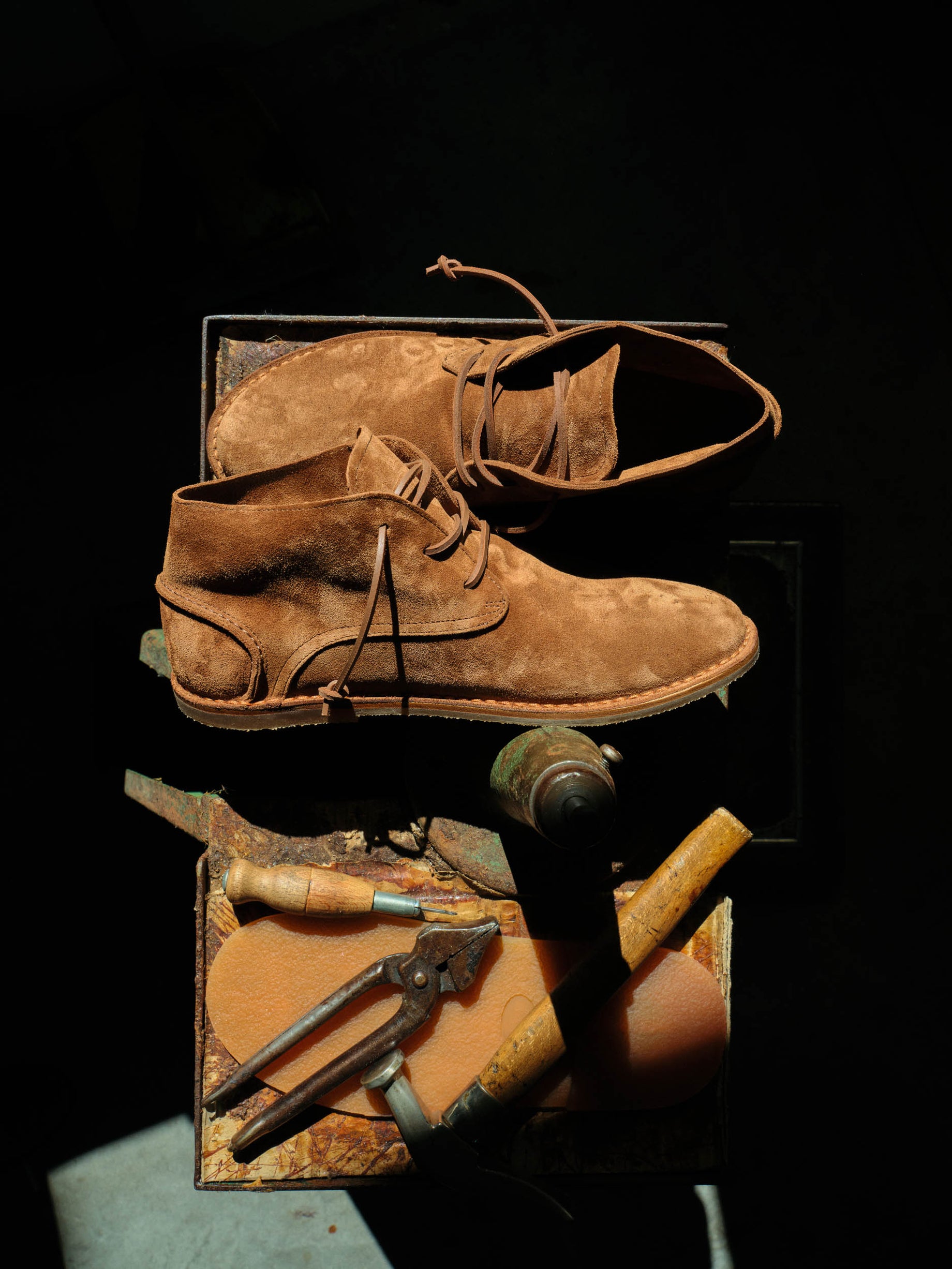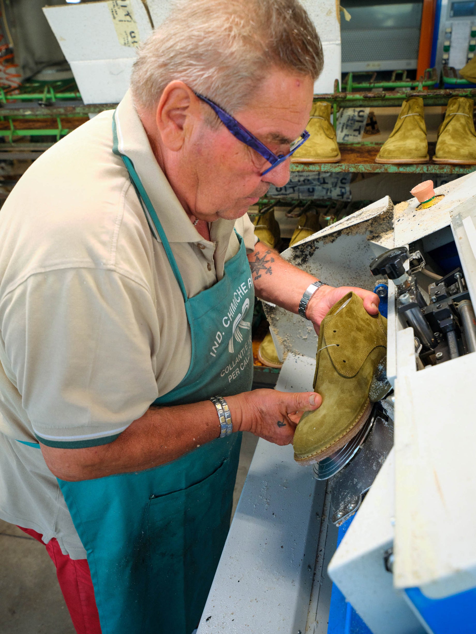 He runs his workshop nestled in the Marche Region of Italy, which is renowned for storied shoemaking techniques, specifically an artisanal stitchdown construction.