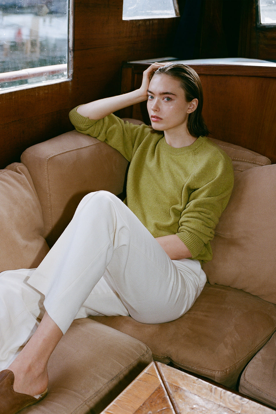 A 100% cashmere sweater, made in Venice, Italy, and given a Sabah twist: a yellow-lime colorway that's perfect for the season. We love Tricot's sweaters. They're super soft, wear-in beautifully and the fits are really specific and excellent. In this instance, we've taken their most iconic crewneck, which is inspired by a classic sweatshirt fit. That means it has raglan sleeves, a slightly boxier shape, and works for all genders. We've only made fifty of 'em... now available on the Sabah Portal and exclusively at Sabah House New York.